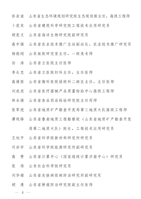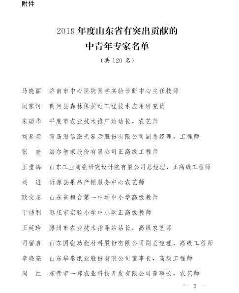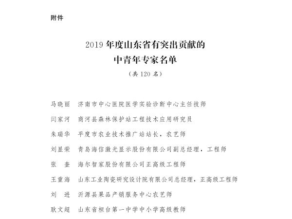 近年來,全省各級、各部門深入貫徹習近平新時代中國特色社會主義思想和黨的十九大精神,著力營造有利于人才創新創業創造的生態環境,大興識才愛才敬才用才之風,推動技術人才隊伍建設不斷取得新成效,為促進我省經濟社會高質量發展提供了強有力的人才智力支撐。全省廣大技術人員立足本職,創新實干,甘于奉獻,積極參與新舊動能轉換、鄉村振興、經略海洋等重大戰略實施,為深化改革、加快發展作出了重要貢獻,涌現出一大批業績突出、奮發有為的中青年。根據《山東省人民政府辦公廳關于印發山東省有突出貢獻的中青年選拔管理辦法的通知》(魯政辦發〔2017〕43號),經逐級推薦、選拔,評審委員會評審和公示,省政府決定,授予王琦等120名同志“山東省有突出貢獻的中青年”榮譽稱號。